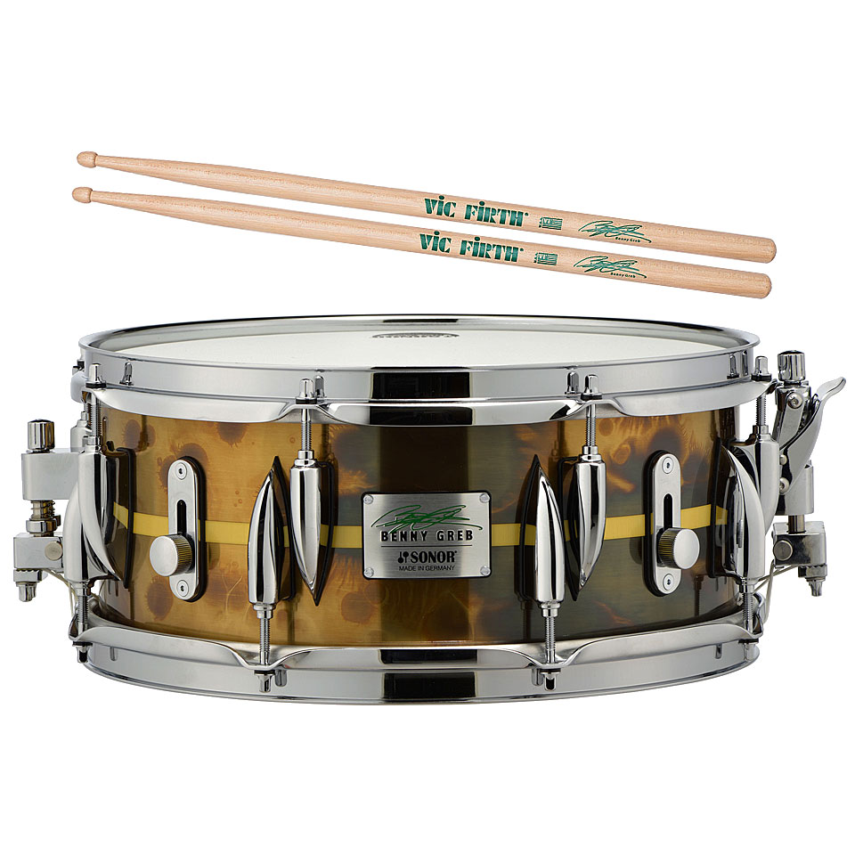 Sonor Benny Greb Signature Brass Snare 2.0 with Sticks Snare Drum
