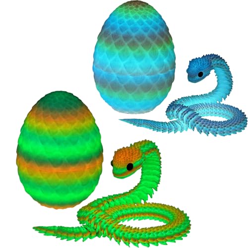 Yearsahrk 3D Gedrucktes Schlangen Drachenei Flexibel 3D Drache Tiere Schlangen Spielzeug Oster körbchen Füller Home Office Dekor Snake Toys (2 Stück.F)