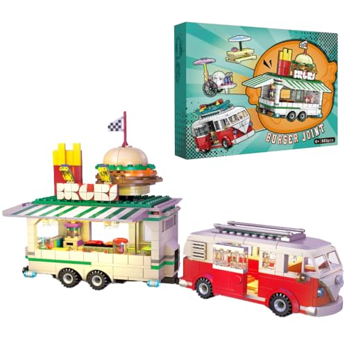 highdar Technik Retro Burgerwagen Bausteine Sets, 883 Teile STEM Auto Modellbausatz, MOC Klemmbausteine Konstruktionsspielzeug, Rennwagen für Erfahrene Baustein Enthusiasten
