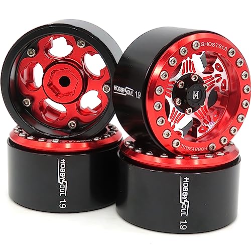 hobbysoul Aluminium 1,9 Beadlock Räder Breite 32 mm, 1,9 Crawler Felgen Sechskant 12mm Rot Schwarz Farbe für Axial SCX10 / Traxxas TRX-4 / Tamiay CC01 / Redcat Gen8, (4er-Pack)