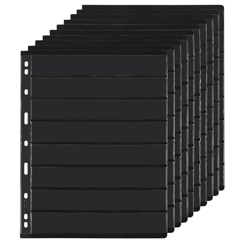PROFESSIONELLE BRIEFMARKENTASCHE – Jede Packung mit 10 Blättern mit 20 Seiten, Seitengröße: 21,5 x 28 cm (8,4 x 11,0 Zoll), Größe jeder Rasterreihe: 19,7 x 3 cm (7,7 x 1,18 Zoll), geeignet für Briefmarken mit einer Höhe unter 3 cm. HOCHWERTIGES MATERIAL – Umweltfreundliche PVC-Blätter und PET-Taschen, langlebig und frei von Säuren und chemischen Weichmachern, die Ihrer Briefmarkensammlung keinen Schaden zufügen, sodass Sie eine langfristige Nutzung sicherstellen können. HERVORRAGENDE HANDWERKSKUNST – Die schwarze Seite ist einteilig heißgepresst und weist keine Spleißspuren auf, sodass sie nicht leicht reißt. Doppelseitig einsteckbare, hochtransparente, dicke Seiten, praktisch zum Sammeln, Betrachten, Ausstellen und Austauschen Ihrer Briefmarken. Einfache Befestigung – Auf der linken Seite der Seite für die Briefmarkensammlung befinden sich 9 Löcher, die für die meisten Arten von Briefmarkenalbum-Ordnern geeignet sind. Es ist ein gutes Sammelwerkzeug für Sie, einfach zu befestigen und fällt nicht so leicht ab, Sie müssen sich keine Sorgen machen, Briefmarken zu verlieren. VIELSEITIG EINSETZBAR – Praktisch zum Aufbewahren und Ausstellen von Briefmarken, Banknoten, Rechnungen oder anderen Sammelobjekten verschiedener Größen. Es ist ein großartiges Geschenk für Freunde, Familie und Sammler und ein perfektes Sammelwerkzeug für Philatelie-Enthusiasten., Hersteller: Uncle Paul