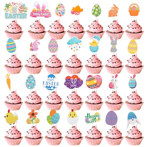 28 Stück Easter Cupcake Toppers, Ostern Tortendeko Hase Cupcake Toppers, Ostereiersuche Topper mit Klebepunkt, Bunte Dekoration Osterfest, Cupcake-Picker für Ostern für Mottopartys zu Ostern