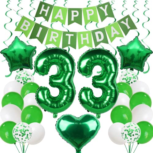 Geburtstagsdeko für den 33. GEBURTSTAG: Der 80cm große Zahlenballon in bezauberndem grün sorgt garantiert für große augen. Unsere Folienballons aus extra starker Ballonfolie werden sorgfältig geprüft und sind frei von Schadstoffen. 33 Geburtstag Deko Set: Grün Zahl "&right(A367,2)&" Folienballon, 20 Latexballons (8x grün, 8x weiß, 4x Konfetti), 6x Hängedeko, 2x sternförmige folienballons, 1x herzförmige folienballons, 1 Satz Happy Birthday Girlande Banner, 2x Ribbon, 1x Stroh. Hochwertige Ballons: Hochwertige Aluminiumfolienballons können wiederverwendet werden und sind für Luft und Helium geeignet. Seien Sie beim Aufpumpen des Ballons vorsichtig und langsam. Stellen Sie die Luftballons nicht in die Nähe der Flamme, scharfer Gegenstände oder Zitronensaft, sie könnten platzen. Füllen Sie nicht zu viel Luft in die Ballons. 85% -90% ist genug. Geburtstag Deko: Die geburtstagsdeko set für jungen/mädchen mann/frau kann schaffen Sie eine fröhliche Partyatmosphäre. Grün Geburtstagsdekorationen eignen sich für Geburtstage party, Hochzeit, Feier, Feiertag, Dschungel Partyaktivitäten. Das Banner macht die Dekoration attraktiver und eindrucksvoller. Tipps für Konfetti-Ballons: Bitte reiben Sie den Konfetti-Ballon vorsichtig auf dem trockenen Handtuch, Teppich oder Ihrem Haar, um die statische Elektrizität zu erzeugen, und schütteln Sie ihn dann langsam, damit diese bunten Stücke an den Seiten des Ballons haften bleiben., Hersteller: Cnrose