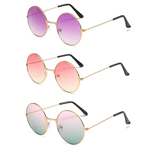 3paar Rund Sonnenbrille Bunt Hippie Gläser Neon Brille Vintage Brille Festival Outfit Retro Partybrillen Kostüm Accessoires für Fasching Karneval Party Foto Requisiten Herren Damen 70er 80er Jahre