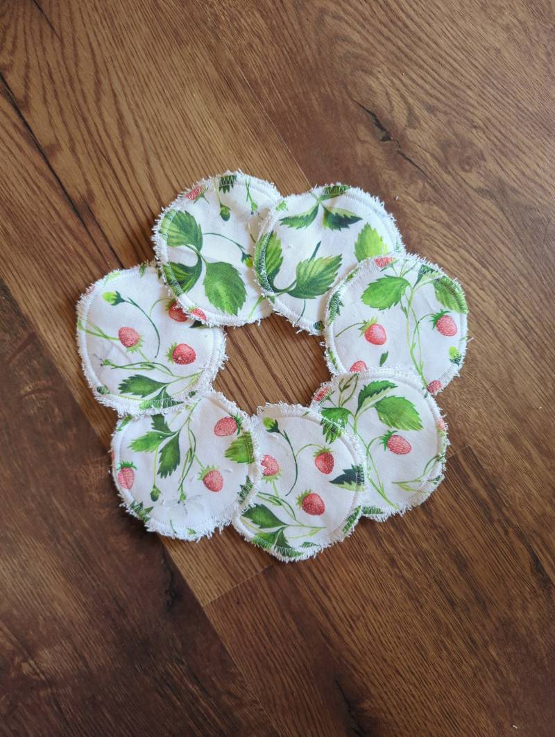Hübsche Abschminkpads zum wieder verwenden. Die umweltfreundliche Alternative für Ihr Badezimmer. Im Set enthalten sind 7 Pads mit einem Durchmesser von 8,5 cm, für jeden Tag der Woche eins. Die Vorderseite der Abschminktücher bestehen aus 100% Baumwolle. Die Rückseite ist aus einem weichen Frotteestoff (90% Baumwolle und 10% Polyester) genäht. Die Kosmetikpads können problemlos bei 40 Grad in der Waschmaschine gereinigt werden. Der Baumwollstoff wurde bereits vorgewaschen, um ein Einlaufen oder Ausfärben zu vermeiden. Sie eignen sich auch als Feuchttücher und sind für die Umwelt eine große Bereicherung. Produktsicherheit: Alle fertigen Produkte wurden von mir hergestellt. Nicole Groß An der Heilquelle 33 65618 Selters gross.nicole@gmail.com -waschbar bei 40 Grad -nicht im Trockner trocknen 7 Abschminkpads Mehrweg