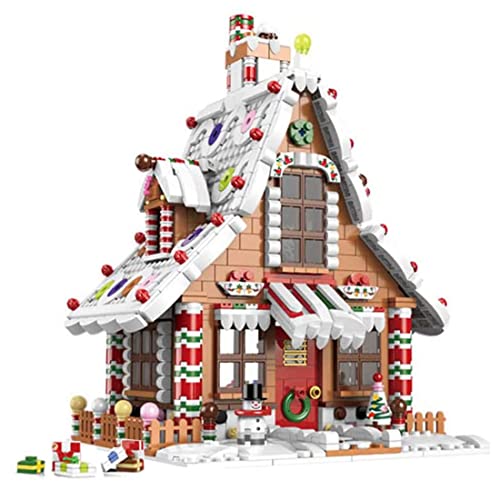 AKOGD Lebkuchenhaus Bausteine für Weihnachten, 1455 Teile Weihnachten Haus mit Figur, DIY Weihnachtsspielzeug Klemmbausteine Bauset Konstruktionsspielzeug