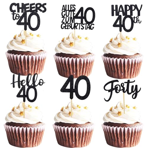 ALEGRE Cupcake Deko 40 Geburtstag,24 Stück Tortendeko 40 Geburtstag Mann Frau,Schwarz Muffin Deko 40. Geburtstagdeko,Cheers to 40 Cupcake Topper 40. Geburtstagdeko,Happy 40th Kuchendeko 40