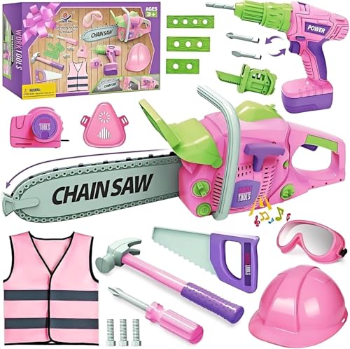 ANYCESO Kinder Werkzeug Set Elektrische Spielzeug-Rollenspiele Werkzeug Kinderspielzeug ab 3 Jahre, Akkuschrauber Konstruktionsspielzeug,Kinderwerkzeug Geschenke für 3 4 5 6 7 8 Jährigen, PINK