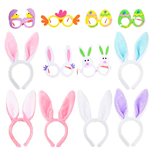 BOFUNX 12pcs Ostern Partybrillen Hasenohren Haarbänder Stirnbänder, Bunny Plüsch Haarreifen Lustige Brille für Kinder Geschenke Ostern Party Foto Requisiten
