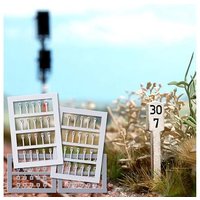Kilometersteine dienen im Original der Kilometrierung von Verkehrswegen und werden in regelmäßigen Abständen entlang von Bahnlinien aufgestellt. Im 100-Meter-Abstand gesetzt werden sie auch als Hektometersteine bezeichnet. Kilometersteine dieses Typs sind vornehmlich an westdeutschen Bahnstrecken zu finden. Packungsinhalt: 40 beidseitig bedruckte Steine zur Markierung einer Strecke von 3,9 km Originallänge (von km 27,0 bis 30,9). Größe: ca. 4 x 1,5 mm, 20 mm hoch. Fuß: 6 x 6 mm.