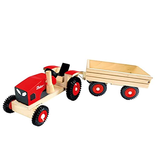 Bino World of Toys Holztraktor Zetor, Holzpielzeug mit traditionellem Design für Kinder ab 3 Jahren, mit Holzanhänger und großen Gummireifen, zur Förderung kindlicher Fähigkeiten, 2 Teile, Mehrfarbig