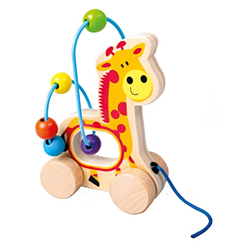 Bino Ziehgiraffe Holzlabyrinth, Spielzeug für Kinder ab 1 Jahr, Kinderspielzeug (hochwertige Kinder-Motorikschleife aus Holz, Motorikspiel in Mini-Format, mit Metall-Schleife & Holzkügelchen), Gelb