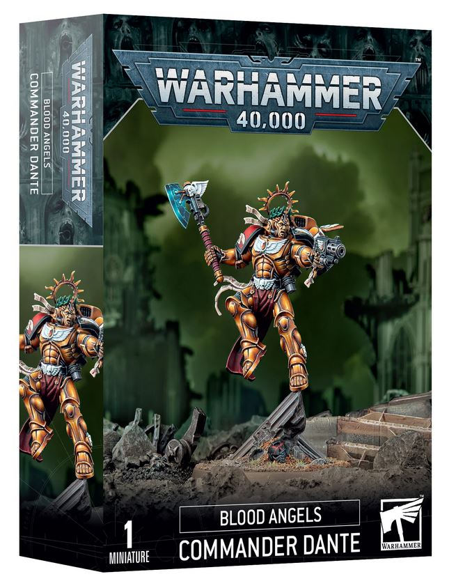Kommandant Dante ist einer der bekanntesten Space Marines im Imperium, ein geliebter Sohn von Sanguinius, der das Blood Angels-Kapitel seit mehr als tausend Jahren führt. Von Guilliman selbst zum Lordregenten des Imperium Nihilus ernannt, schwebt Dante in glänzender goldener Rüstung über dem Schlachtfeld. Einmal im Kampf, erstarrt der durchdringende Blick seiner Todesmaske Feinde vor unnatürlicher Angst, während er Feind um Feind mit perfekten Schlägen von der Axe Mortalis niederstreckt.