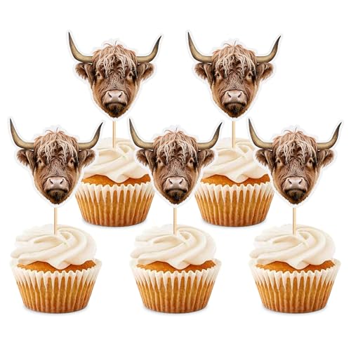 Blumomon 24 Stück Hochlandrind Cupcake Topper Dschungel Safari Tiere Kuchen Dekoration Tiere Figur Kuchen Topper Picks für Babyparty Kindergeburtstag Party Supplie