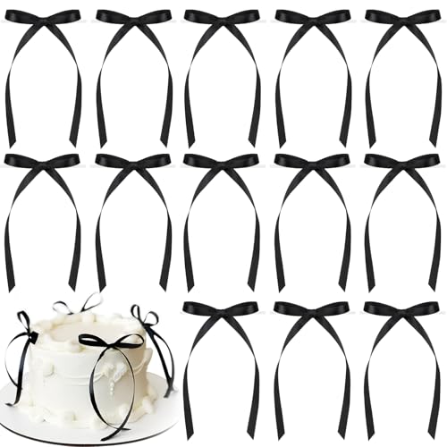 COLOFALLA 20 Stücke Schwarz Cake Schleife Klein Cake Deko Kuchen Deko Torten Dekoration Hochzeit Tortenaufsätze für Hochzeit Party (Schwarz)