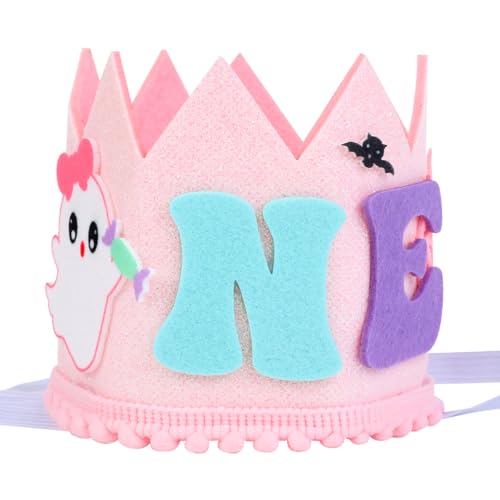 CORNER LACE Halloween 1st Birthday Hut mit First Birthday Glitter Krone, Gruselige Ein Stirnband für Mädchen Pastellfarbe, Netter Geist Ein Jahr alte Dekorationen Supplies Gefälligkeiten