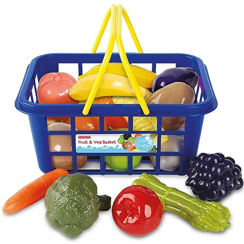 Mini Einkaufskorb mit 21 Stück von Obst und Gemüse PRETEND Einkaufen mit gebaut in Güte Ideal für Ausbildung gesunde Ernährung Maße: 21,5 x 16,5 x 9,5 Geeignet für 3 +, Hersteller: Casdon