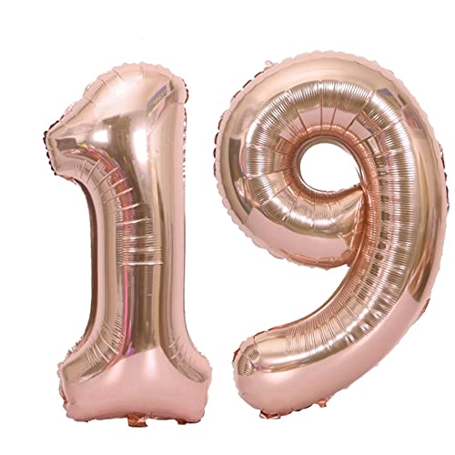 D2D | Party Balloon Zahl 19 XXL in Rosé - Größe: 100 cm - Folienballons - Geburtstagdeko - Zahlenballons - Helium Ballons