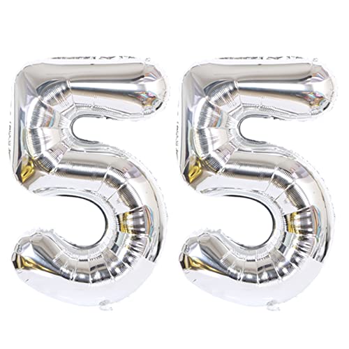 D2D | Party Balloon Zahl 55 XL in Silber - Größe: 80 cm - Geburtstagdeko - Folienballons - Zahlenballons - Helium Ballons
