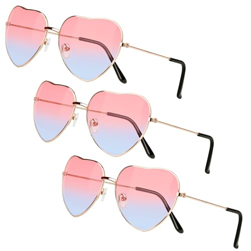 Dawumin 3 Paar Herz Party Brillen, Hippie Brille Damen, Herzbrille, Lustige Sonnenbrille, Retro Herzförmige Partybrille, für 60er 70er 80er 90er Jahre Party Accessoires (Oben rosa und unten blau)
