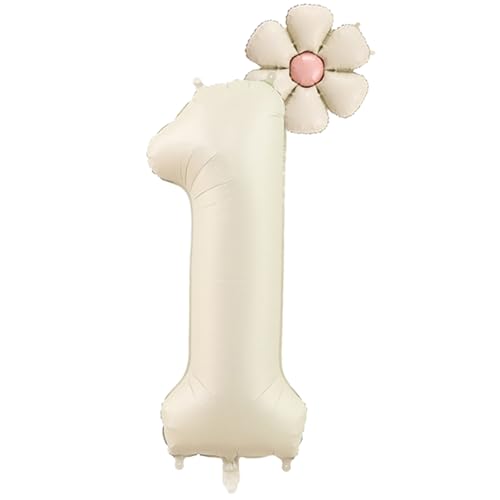 DazzJoy Geburtstagsdeko 1 Jahr Mädchen mit Gänseblümchen Folienballon, Luftballon 1. Geburtstag Mädchen Creme, 40 Zoll Creme Luftballons Zahlen 1, Ballon 1 Geburtstag Junge, Kindergeburtstag 1 Jahr
