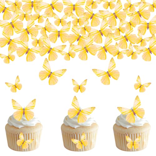 DazzJoy - 72 Gelbe Schmetterling Esspapier für Torte, Geburtstag, Hochzeit