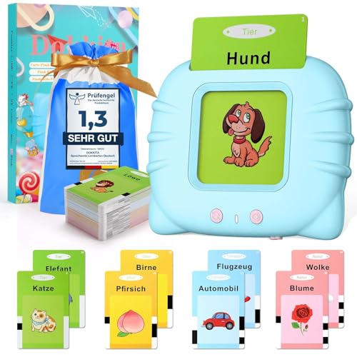 Dokkita Sprechende Lernkarten Deutsch, Flash Karten Kinder Deutsch, Standard Deutsch-112 Blätter 224 Wörter, Lernkarten zur Sprachförderung, Vorschule Geschenk Spielzeug für Mädchen Jungen-Blau