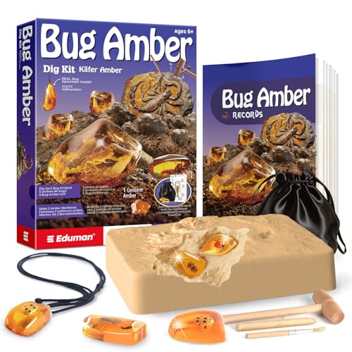 EDUMAN Bernstein Ausgrabungsset für Kinder ab 6 7 8 9 10 11 12 Jahren, Künstliche Insektenfossilien und Edelstein Ausgrabung, Geschenk für Jungen und Mädchen zum Kindergeburtstag