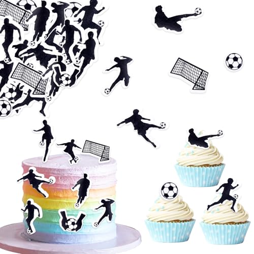 ENLACE Essbare Tortendeko Fussball,48 Stück Essbare Fußball Tortendeko Geburtstag Junge,Kuchen Deko Fußball,Essbare Fussball für Torte,Esspapier Fussball Cake Topper,Tortenaufleger Fussball Geburtstag