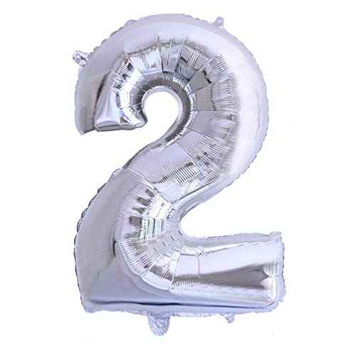 Folienballon Nummer 2 Silber Riesige Luftballons Zahl Silber Party Geburtstag Dekoration Jubiläum Hochzeit Größe 70cm mit Zubehör zum Aufblasen von Luft oder Helium