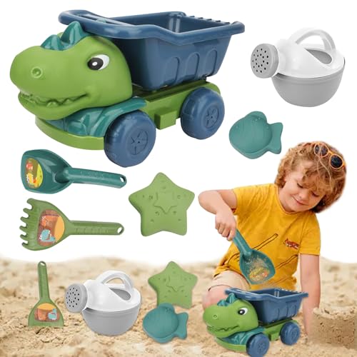 GUAHKUN Sandspielzeug ab 1 Jahr Sandkasten Spielzeug 7-teiliges Set Dinosaurier Sandformen Muldenkipper Glattes Strandspielzeug für Kinder Kleinkinder Garten Strand Spielplatz (B)