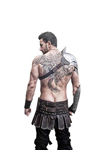 Dieser Stahlpanzer-Pauldron für Gladiator kann ein perfektes Element zu Ihrem Rüstungs- oder Cosplay-Kostüm sein. Die Metall-Cosplay-Schulter aus unserer riesigen Sammlung von Fantasy-Rüstungen für Live Action Rollenspiele (LARP) sieht authentisch und einzigartig aus. Diese Kriegerpanzerung ist ein komplett handgefertigtes Produkt, das für maximale Bewegung entwickelt wurde, sein tragbares Gewicht trägt auch zu einem hohen Tragekomfort bei. * Stahldicke: 18G (1.0mm) LARP-Optima 100 % handgefertigt von indischen Kunsthandwerkern, Hersteller: GURU KIRPA ENTERPIRSES