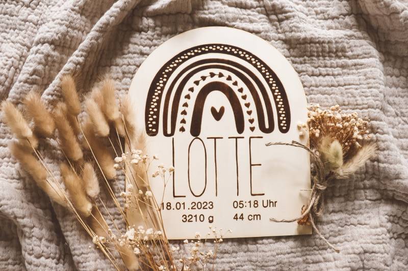 Die Geburtstafel Rainbow eignet sich ideal als Geschenk zur Geburt. Sie kann den individuellen Wünschen angepasst werden. Hinweis: Holz ist ein Naturprodukt: Maserung, Farbe und Struktur sind bei jedem Artikel einzigartig und damit ein echtes Unikat. Geburtstafel Holz Rainbow