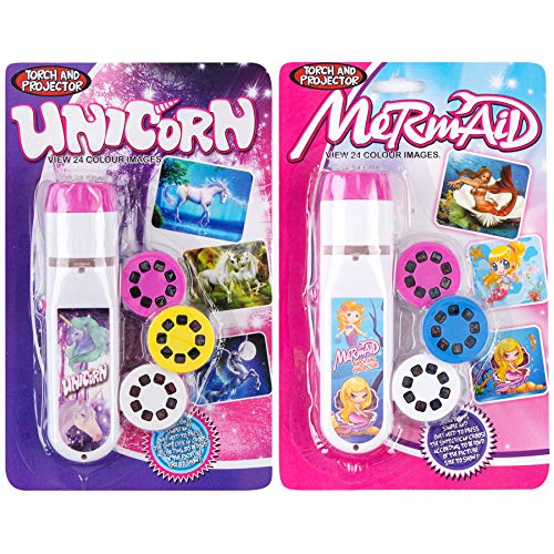 Georgie Porgy Kinder Projektor Taschenlampe Beamer Spielzeuge zum Wand Decke Zelt Lehrreich Wissenschaft Einstellen für Jungen Mädchen mit 2 Blätter Tattoos Aufkleber (Einhorn + Meerjungfrau)