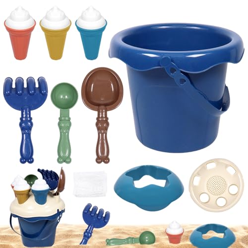 Giugio Sandspielzeug Eimer Set, Sandkasten Spielzeug Kinder, Sandkasten Spielzeug, Sandeimer für Kinder mit 3 Eistüten, 1 Eimer, 3 Schaufeln, Gartenspielzeug ab 3+ Jahre Mädchen Junge
