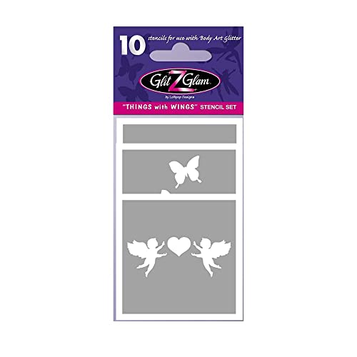 Das "Flügelwesen"-Set beinhalten folgende Glitzer-Tattoo-Schablonen: Schmetterling-Kaskade, Pegasus, Kolibri, zwei tanzende Feen, Herz mit zwei Engeln, Herz mit Flügeln, Schmetterling mit Blumenranke, Frühlingsschmetterling, Fee und Libelle. Die Glitzer-Tattoo-Schablonen sind einfach anzubringen, da sie sanft auf der Haut kleben bleiben, während du das Body-Art-Glitzer aufträgst. Sobald das Tattoo fertig ist, musst du nur noch die Schablone abziehen & das war's. Das Flügelwesen-Schablonen-Set von GlitZGlam Body Art ist eine Glitzer-Tattoo-Schablonen-Kollektion verschiedenster Tattoo-Designs mit denen man wunderschöne Körperverzierungen kreieren kann. Die Tattoo-Schablonen können mit vielen Arten von Temporär-Tattoos verwendet werden. Die Schablonen können bis zu 3 Mal wiederverwendet werden, wenn sie gemäß der Anweisungen benutzt werden und sind für alle Hauttypen geeignet., Hersteller: GlitZGlam