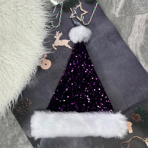 Glitzer Pailletten Weihnachtsmütze für Kinder Erwachsene,Lila Plüsche Santa Mütze mit Glitzer Pailletten,Bequemes Dicker Klassischer nikolaus mütze aus Samt für festliche Partys im neuen Jahr