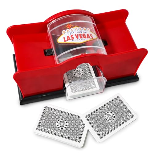 kartenmischmaschine manuell 1-2 decks, mischmaschine karten, kartenmischer mit Kurbel, karten mischgerät für skip bo, Poker, Blackjack, uno mischmaschine für Kinder, Erwachsene & Großeltern - rot