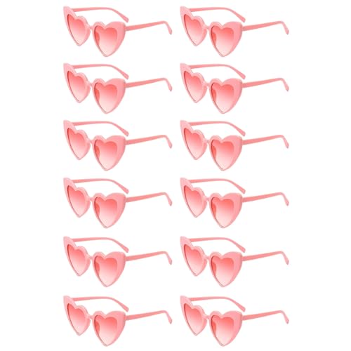 Partybrille Herz Sonnenbrill, 12 Stück Herz Sonnenbrille Hochzeit Damen, Vintage Herzform Brille, Bride to Be Deko Sonnenbrille Herzform, JGA Partybrillen für Party, Hochzeit(Rosa)