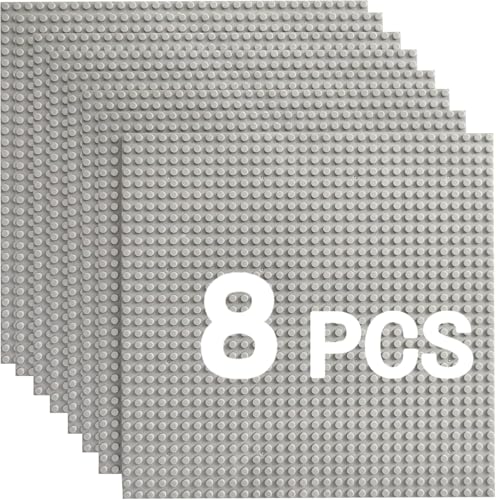 HUIZDQ 8 Stück Klassische Grundplatten für Bauklötze, 100% kompatibel mit Allen großen Marken, mit 32 X 32 Noppen, Grau
