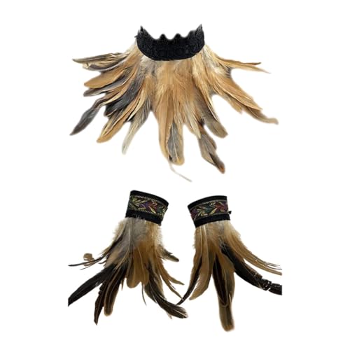 Halloween Feder Achselzucken Schalkragen Halskette Damen Feder Manschetten Feder Armband Frauen Feder Handgelenk Manschetten Gothic Damen Feder Umhang Cape Federboa Feder Schal Cosplay Kostüm