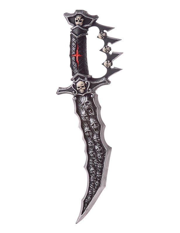 Lieferumfang: 1 Horror Dolch Klinge der Verdammten Halloween Accessoire schwarz-silber Farbe: Schwarz/Silber. Material: 100% Polyester. Größe: 40,5 cm. Um finstere Macht zu erlangen, muss jeder böse Magier, der etwas auf sich hält, ab und an Opfer bringen. Lebendige Opfer! Dieser Dolch hat schon so viele Seelen verschlungen, dass diese ihn verändert haben: Er ist nun eine Klinge der Verdammten! Dieses gruselige Halloween-Accessoire kommt direkt von California Costumes aus den USA! Das Design ist über jeden Zweifel erhaben! Auf der gezackten Klinge sind schreiende Seelen zu sehen und der Griff ist mit Totenschädeln und Stacheln besetzt! Von diesem Mordinstrument lässt man sich gerne ins Totenreich schicken ... oder etwa nicht Das perfekte Accessoire für jedes Halloween-Kostüm! Aber auch zu Karneval oder auf einer Kostümparty werden sie mit Ihren Opferritualen gewiss schnell Freunde finden! Achtung! Nicht für Kinder unter drei Jahren geeignet. Kann Kleinteile enthalten - Erstickungsgefahr.