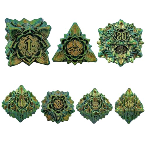 Hsthe Sea 7-TLG. Blattdesign DND Würfel DND Metallwürfel Set Gelb Grün Dungeons and Dragons Würfel, handgefertigte polyedrische Würfel RPG D und D Rollenspielwürfel