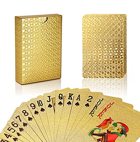 Hsthe Sea wasserdichte Spielkarten, Coole Plastikspielkarten, wasserdichte Spielkarten, Plastikspielkarten, Pokerspiel, Familienpartyspiel, Spielkarten für Kinder und Erwachsene, Gold (1 Karte)