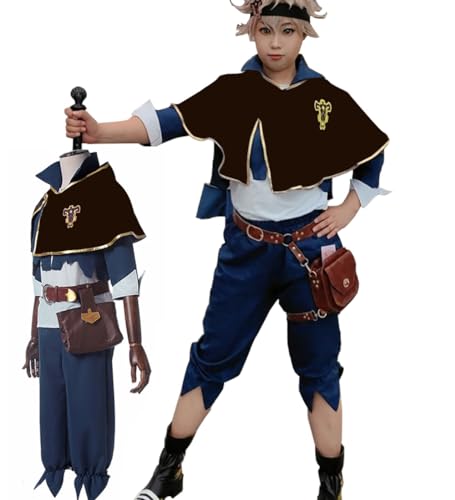 IKaewe Asta Cosplay-Kostüm, Anime, Herren, schwarzer Bullenumhang, Umhang, Uniform, Fell-Set (XL, Blau)