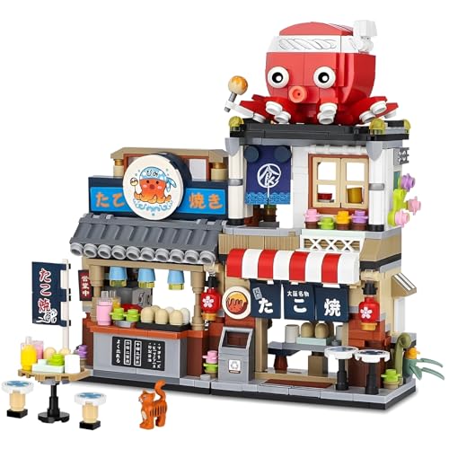 Japanische Straßenansicht Takoyaki Einkaufen Mini Bausteine Bausatz, 722Stück Kreative Konstruktion Micro Klemmbausteine, Simulation Architektur Spielzeug, Geschenkideen für Kinder Erwachsene