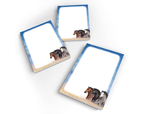 Junapack 12 Mini-Notizblöcke DREI Pferde Mitgebsel für Kindergeburtstag Gastgeschenke für Mädchen / A7-Format