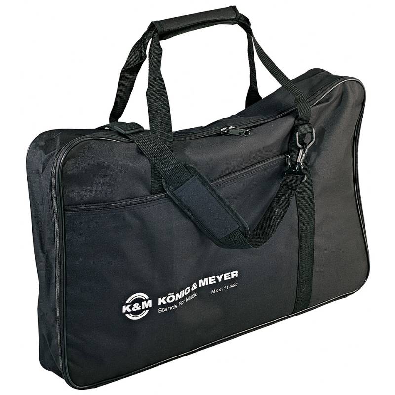 Reißfestes Nylongewebe mit Leinencharakter · wasserabweisend · mit umlaufendem Reißverschluss, Trageschlaufen und abnehmbarem Umhängeriemen · 2 Innenfächer und zusätzliche Vortasche mit Reißverschluss · Schwarz mit grünem K&M-Signet · geeignet für Orchesternotenpulte 114/1, 118/1 etc. · Größe: 695 x 120 x 400 mm · Gewicht: 0,9 kg · Notenpulttaschen