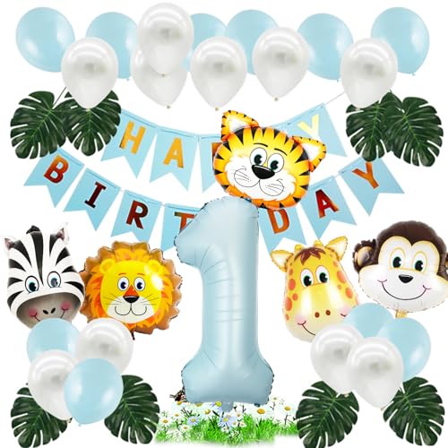 🦁【Dschungel Deko 1. Geburtstag】 Sie erhalten 20 Latexballons (blau*10, weiß*10), 1 Folienballon Nummer 1, 5 Mini-Tierfolienballons (Zebra*1, Löwe*1, Giraffe* 1, Tiger*1, Affe*1), 1 HAPPY BIRTHDAY-Banner, 8 Stück grüne Schildkrötenblätter, 2 Rollen weiße Bänder, 1 Stück Kleber. Es ist ein tolles Geburtstagsset, das Ihre Geburtstagsfeier vollständig dekorieren kann! 🦓【Zuverlässige Qualität】 Dieser Ballon besteht aus hochwertiger Aluminiumfolie und Latex, die ungiftig und harmlos sind, ultrahohe Elastizität, langlebig, nicht leicht zu verformen, zu brechen oder zu lecken, wiederverwendbar, mit klarem Musterdruck und hell Farben. Gleichmäßige Farbe. 🦒【Reichhaltiges Kindergeburtstag Deko Set】 Dieses Set enthält reichhaltige Dekorationen, Luftballons in verschiedenen Farben und Formen, blau-cremefarbene Luftballons Nummer 1, blaue und weiße Latexballons, 5 Luftballons in Tierform und alles Gute zum Geburtstag-Bannerdekorationen, die Kombination aus Schildkrötenblättern fügt hinzu Eine Dschungelatmosphäre für Kindergeburtstage und mehr Freude auf Partys. Mit dem mitgelieferten weißen Band und Klebepunkten können Sie ganz einfach dekorative Sets in Form von Kränzen, Bündeln oder Schleifen erstellen. 🐒【Deko 1. Geburtstag Junge】 Dieses Set mit Dschungeltier-Geburtstagsparty-Dekorationen wird Ihrem Kind eine tolle Überraschung bereiten. Die niedlichen Tiermuster und leuchtenden Farben eignen sich perfekt zum Feiern des ersten Geburtstags Ihres Kindes und schaffen eine kindliche Atmosphäre fröhliche Atmosphäre. 🐯【Breite Verwendungsmöglichkeiten】 Sie können dieses Set Dschungel-Geburtstagsdekorationen an Wänden, Fenstern, Gärten, Decken und überall dort anbringen, wo Sie es dekorieren möchten, perfekt für Dekorationen zum 1. Geburtstag von Jungen, kann auch zur Dekoration von Dschungel-Geburtstagsfeiern und Wildtier-Geburtstagsdekorationen verwendet werden und wilde Mottopartys und mehr., Hersteller: Koboko