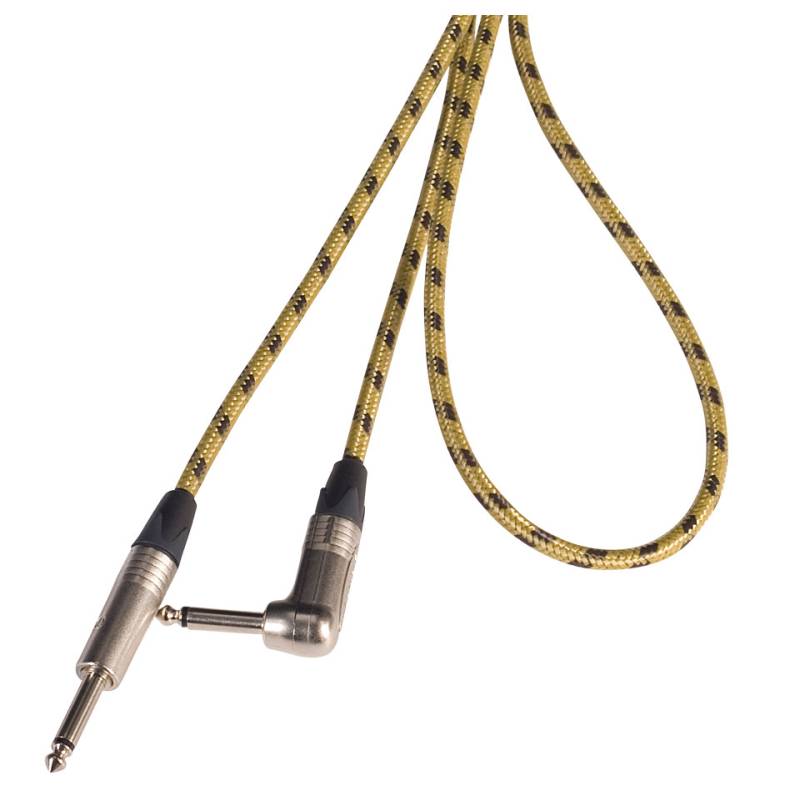 Klassisches Design trifft auf robuste und professionelle Klinkenstecker · Pro Instrumentenkabel · Von Stecker: Monoklinke · Auf Stecker: Winkel-Monoklinke · Kabellänge: 3,0 m · Kabelfarbe: gelb-schwarz · Steckerfabrikat Anschluss A: Neutrik NP2X · Steckerfabrikat Anschluss B: Neutrik NP2RX · Kabelfabrikat: Sommer Cable SC-Classique · Leiterquerschnitt: 1x 0,5 mm² · Außendurchmesser: 6,5 mm · Besonderheit(en): Handgelötet · Produktionsland: Deutschland · Instrumentenkabel